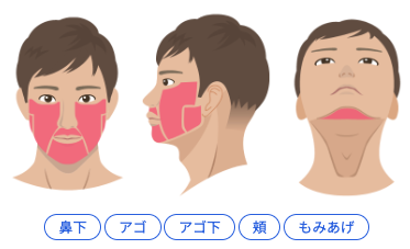 | ヒゲ3部位 | ![]() ![]() 5回 39,800円 12回 82,560円 | ![]() ![]() 1回14,300円 3回(特別価格)10,000円 5回35,400円 8回51,200円 10回59,000円 |